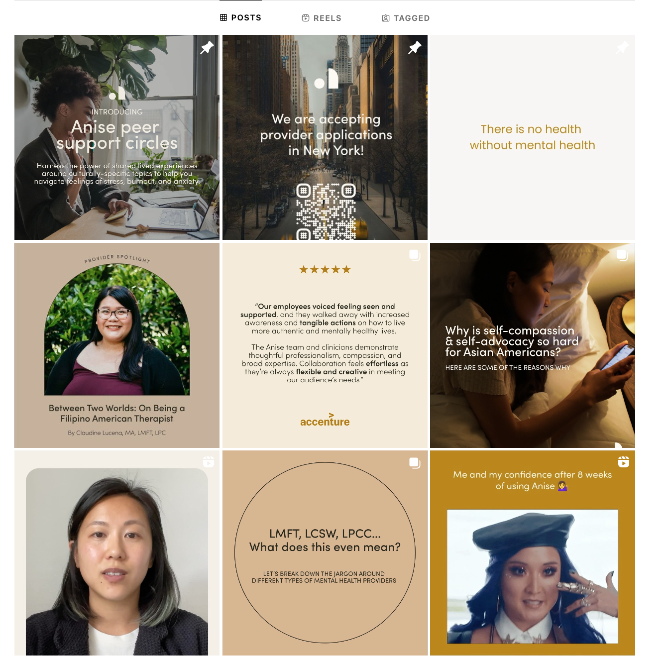 I had the pleasure of working on multiple projects for Anise Health, a new online platform centering on mental health care for Asian and Pacific Islander communities.